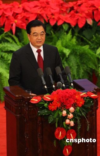 中國國家主席胡錦濤在開幕式上致辭。中新社發(fā) 廖文靜 攝