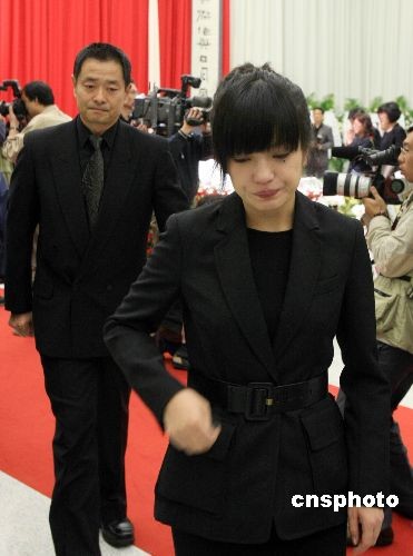 影視明星趙薇(前)以及濮存昕到場送別一代電影大師。中新社發(fā) 湯彥俊 攝