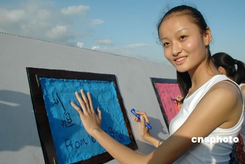 圖為來(lái)自中國(guó)安徽的選手劉旭在印制手模。中新社發(fā) 尹海明 攝
