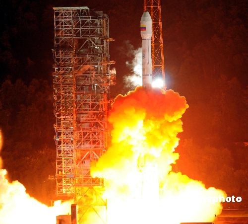 北京時(shí)間三十日凌晨零時(shí)五十三分,中國在西昌衛(wèi)星發(fā)射中心用“長征三號乙”運(yùn)載火箭,將“委內(nèi)瑞拉一號”通信衛(wèi)星成功送入預(yù)定軌道。這是中國首次向拉丁美洲用戶提供整星出口和在軌交付服務(wù)。中新社發(fā) 孫自法 攝