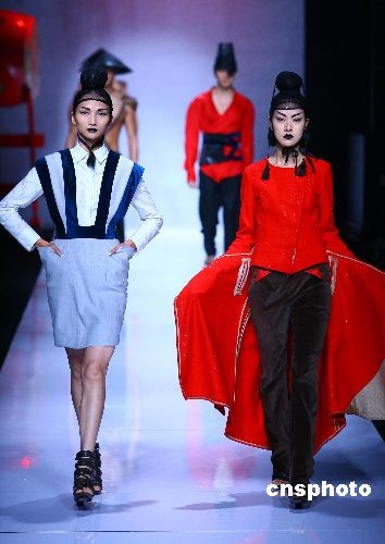 2008年10月30日,模特在2008上海時裝周國際品牌發(fā)布會上表演。本季設計師最新秋冬作品靈感來自于中國象棋。中新社發(fā) 睿瀛 攝