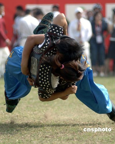 10月31日,第六屆全國(guó)農(nóng)運(yùn)會(huì)“搏克”表演賽在福建泉州僑鄉(xiāng)體育場(chǎng)舉行。搏克是蒙古語,意為摔跤,同時(shí)含有結(jié)實(shí)、團(tuán)結(jié)、持久之意。搏克是目前世界上流行的各種摔跤運(yùn)動(dòng)中完整保持自己古老民族特色的一項(xiàng)直接對(duì)抗性競(jìng)技體育運(yùn)動(dòng)。