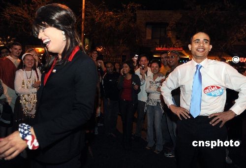 當(dāng)?shù)貢r間10月31日,萬圣節(jié)之夜,一位民主黨的支持者男扮女裝成佩林形象,在街頭巧遇民主黨總統(tǒng)候選人“奧巴馬”!皧W巴馬”始終以正面形象示人,而“佩林”慘遭惡搞。當(dāng)晚,數(shù)十萬洛杉磯市民走上街頭參加萬圣節(jié)之夜大游行,西好萊塢的圣塔莫妮卡大道上“群魔亂舞”,面目猙獰的“妖魔鬼怪”帶來的不是恐怖而是快樂。中新社發(fā) 張煒 攝