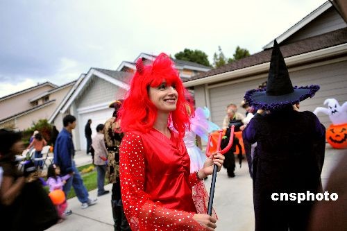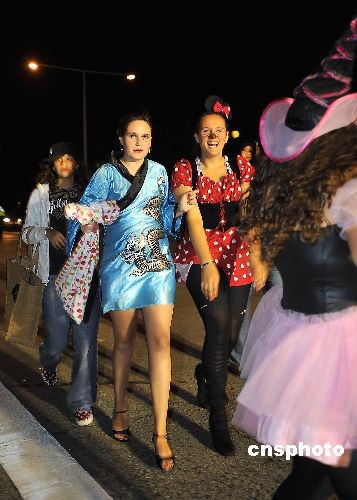 圖:美國人服裝艷麗歡度“萬圣節(jié)”