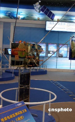 圖為中國航天科技集團公司研制的地震電磁監(jiān)測試驗衛(wèi)星模型在珠海航展上展出。中新社發(fā) 孫自法 攝