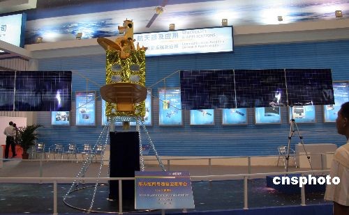 圖為中國航天科技集團(tuán)公司研制的新一代通信衛(wèi)星研制平臺“東方紅四號”模型在航展上展出。中新社發(fā) 孫自法 攝
