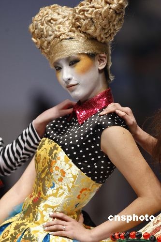 11月10日,一場被命名為“優(yōu)雅時尚的英倫風(fēng)暴”主題的發(fā)布會在中國國際時裝周上推出。讓觀眾不只是欣賞到服裝的絢麗動人,彩妝的美麗也是一樣的奪人心弦此次發(fā)布會更是凸顯這一特點。宛如詭異絢爛的愛麗絲夢境,造型在天真甜美中進行夸張怪誕的演繹。中新社發(fā) 盛佳鵬 攝