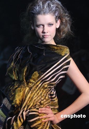 圖為模特展示2009春夏《長(zhǎng)江系列》高級(jí)時(shí)裝發(fā)布新款。中新社發(fā) 錢(qián)興強(qiáng) 攝