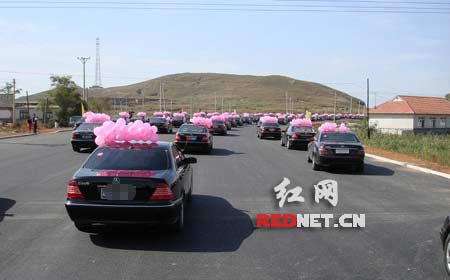 加長悍馬頭車后面是新款千禧奔100輛。