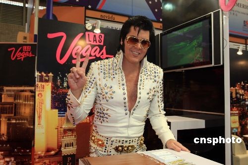 11月20日,美國拉斯維加斯“貓王”親臨上!岸00八中國國際旅游交易會”,并站臺推介美國旅游。中新社發(fā) 潘索菲 攝