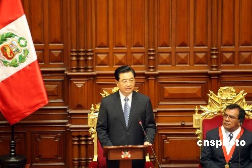 圖:胡錦濤在秘魯國會發(fā)表重要演講