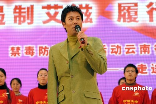 作為中國防艾義務(wù)宣傳員的著名歌手蔡國慶28日出席云南舉行的防艾宣傳進(jìn)大學(xué)活動(dòng)。中新社發(fā) 保旭 攝