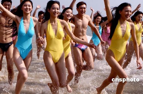 11月30日,2008新絲路中國模特大賽總決賽在海南三亞拉開帷幕,是次參賽的選手年齡最小為16歲,最大的選手為24歲。新絲路中國模特大賽至今已經成功舉辦15屆。圖為參賽佳麗在三亞泳裝展示風采。中新社發(fā) 錢興強 攝