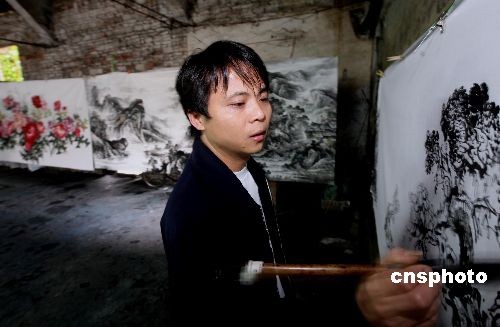 著名的奧運之鄉(xiāng)、全國舉重之鄉(xiāng)廣西桂林五通鎮(zhèn),依靠桂林常年旺盛的游客資源,農(nóng)民繪畫產(chǎn)業(yè)蓬勃發(fā)展。全鎮(zhèn)800多農(nóng)民從事繪畫,年產(chǎn)值達8000多萬元,成為名副其實的藝術(shù)之鄉(xiāng),全國文化(美術(shù))產(chǎn)業(yè)示范基地。中新社發(fā) 王麗南 攝