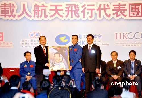 香港工商界代表分別向航天英雄贈送畫像。中新社發(fā) 鄧慶樂 攝