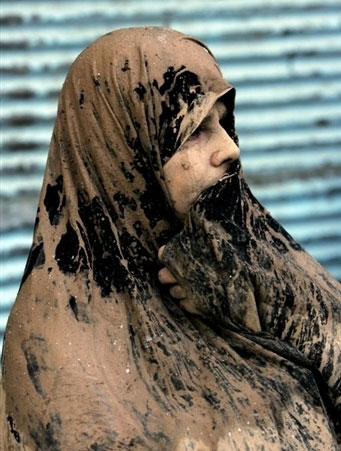 2008年1月19日,在伊朗城市霍拉馬巴德。一位什葉派穆斯林婦女頭戴面紗,觀看阿修羅宗教節(jié)的儀式。