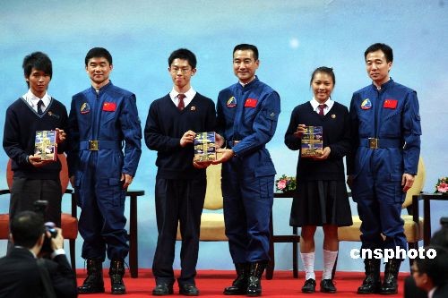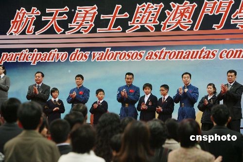 十二月九日,“神舟七號”載人航天飛行代表團一行在澳門理工學院與澳門學生真情對話,分享太空之旅的經(jīng)過和感想。
