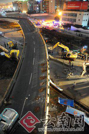 圖:云南昆明立交橋坍塌造成2人死亡