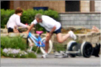 布什從電動(dòng)滑板車(chē)上摔倒。