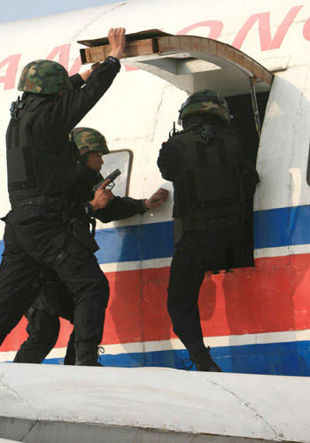 武警戰(zhàn)士參加反劫機演練