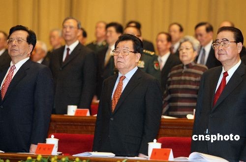 12月18日上午,紀(jì)念中國(guó)共產(chǎn)黨十一屆三中全會(huì)召開(kāi)30周年大會(huì)在北京人民大會(huì)堂舉行,李鵬、李瑞環(huán)、曾慶紅等出席大會(huì)。中新社發(fā) 任晨鳴 攝