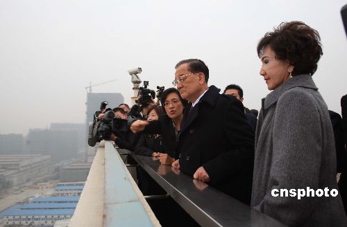 12月20日,中國國民黨榮譽主席連戰(zhàn)一行訪問上海世博局并俯瞰正在建設中的世博場館。中新社發(fā) 潘索菲 攝