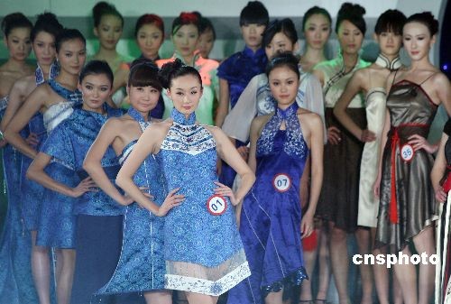 圖為參賽選手們展示旗袍主題裝。中新社發(fā) 毛建軍 攝