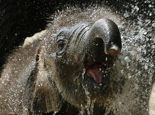 一頭泰國小象,贏得“濕漉漉的野生動(dòng)物”獎(jiǎng)。