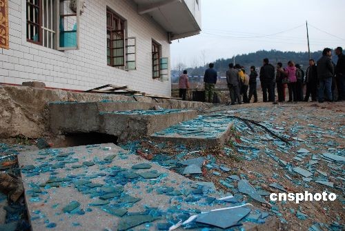 離爆炸現(xiàn)場(chǎng)100米外的民房受沖擊波影響。中新社發(fā) 余致力 攝