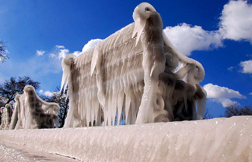 2月17日希臘北部一個小城,戶外的長凳被冰覆蓋。