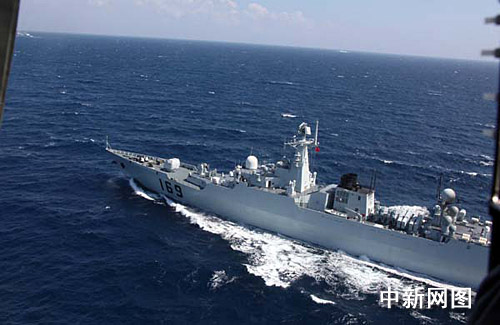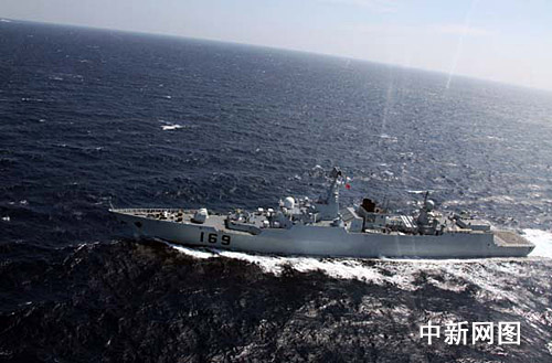 圖:航拍“武漢”艦馳騁印度洋雄姿(2)