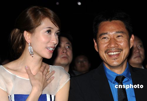 在片中飾演曹操與小喬的張豐毅、林志玲出席發(fā)布會(huì)愉快交流。