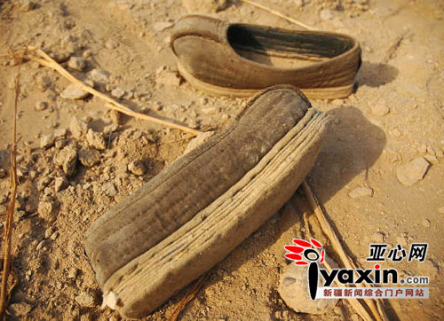 干尸出土?xí)r所穿的圓口千層底兒布鞋,鞋子底厚、針腳大,新疆考古所研究員呂恩國認(rèn)為是生者為逝者專門做的一雙冥鞋。