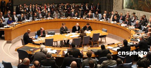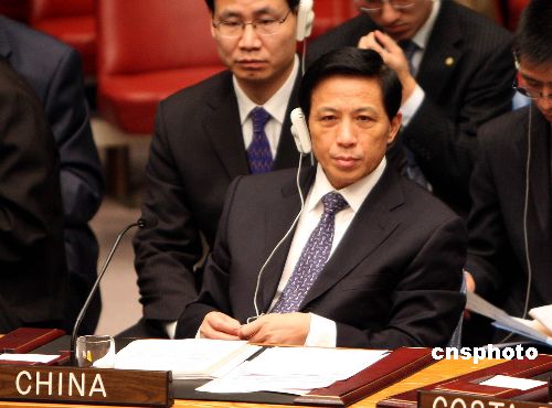 聯(lián)合國安理會1月6日就加沙局勢舉行緊急會議。中國常駐聯(lián)合國代表張業(yè)遂在會上發(fā)言,呼吁安理會盡快行動,通過一項決議,促成以巴立即;。包括巴勒斯坦民族權力機構主席阿巴斯、美國國務卿賴斯、英國外相米利班德,以及沙特、埃及、約旦、黎巴嫩、摩洛哥、卡塔爾、敘利亞等阿拉伯國家外長和安理會理事國常駐聯(lián)合國代表都出席會議。中新社發(fā) 李靜 攝