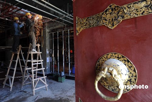 一月初,西藏拉薩布達拉宮珍寶館內(nèi)施工人員正在緊張的施工建設,該工程將于四月中旬竣工。中新社發(fā) 廖攀 攝