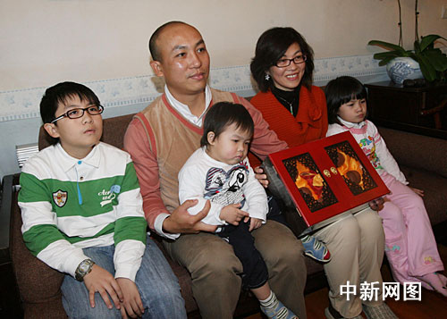 圖為胡祖杰一家五口向記者講述當(dāng)時(shí)情形,并展示習(xí)近平副主席贈(zèng)送的茶具。
