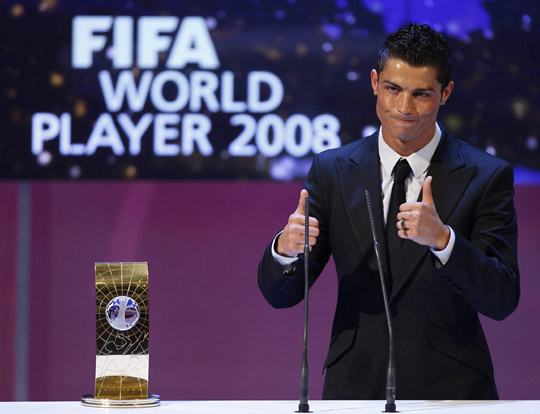 C羅在2007年世界足球先生評(píng)選中屈居卡卡、梅西之后排名第三,今年他終于如愿以償摘得桂冠。這也是葡萄牙繼菲戈之后又一位奪得世界足球先生榮譽(yù)的國腳。