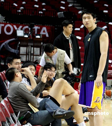 當(dāng)?shù)貢r間1月13日晚,在美國NBA效力的中國兩大國手姚明與孫悅相逢休斯頓。當(dāng)晚,休斯頓火箭隊在主場迎來洛杉磯湖人隊的挑戰(zhàn),分別效力于火箭和湖人隊的中國國家隊隊友姚明與孫悅(右一)在賽前見面。中新社發(fā) 歐文 攝