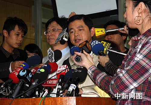 1月19日,臺(tái)北地方法院首次開(kāi)庭審理前臺(tái)灣地區(qū)領(lǐng)導(dǎo)人陳水扁家弊案。傳訊陳水扁到地院準(zhǔn)備程序庭。圖為庭審后陳水扁委任律師鄭文龍(左三)、石宜琳(左二)舉行記者會(huì)。中新社記者 陳立宇 攝