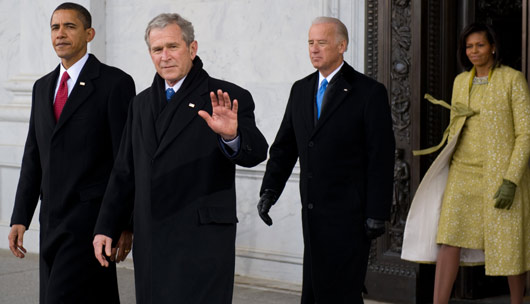 中新網(wǎng)1月21日電 美國當(dāng)?shù)貢r間1月20日,美國第44任總統(tǒng)就職典禮結(jié)束后,新任總統(tǒng)奧巴馬送前任總統(tǒng)布什離開國會山。按照事先的安排,布什離開居住了8年的白宮后,從華盛頓郊外的安德魯斯空軍基地乘坐專機(jī)直飛家鄉(xiāng)得克薩斯州米德蘭,參加當(dāng)?shù)厝藶樗e辦的“歡迎回家”大型集會。隨后,布什將前往自家的克勞福德農(nóng)場,在那里度過作為前總統(tǒng)的第一晚。