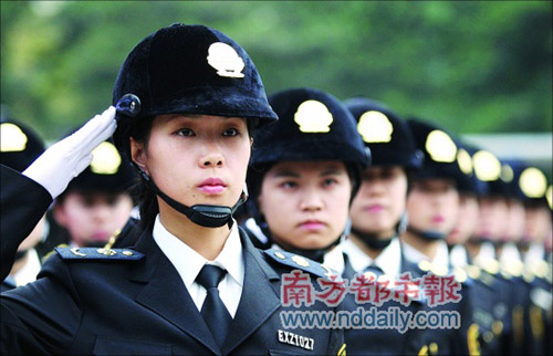騎士頭盔、靴子、緊身衣,22名女隊(duì)員身著新制服集結(jié)宣誓,開電瓶車上路巡街,沿途引起市民驚艷注目。昨日(2009年1月20日)上午,佛山首支城管執(zhí)法女子特勤中隊(duì)掛牌上路,佛山欲借此提升打造城管品牌形象。