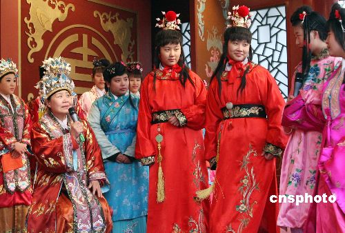 1月27日 (大年初二),北京大觀園十四屆紅樓廟會(huì)吸引眾多假日游客,本屆廟會(huì)以弘揚(yáng)中華傳統(tǒng)文化為宗旨,以展現(xiàn)紅樓文化為主題,呈現(xiàn)出改革開(kāi)放30年來(lái)新北京、新宣武的精神風(fēng)貌。廟會(huì)主要活動(dòng)有“元妃省親”、“寶黛成婚”“賈母賀壽”、紅樓文化展覽--木版年畫(huà)展、紅樓夢(mèng)人物火花展以及紅樓美食展示區(qū)等。圖為在紅樓廟會(huì)上由一對(duì)雙胞胎扮演的“賈寶玉”富有戲劇色彩。中新社發(fā) 錢興強(qiáng) 攝