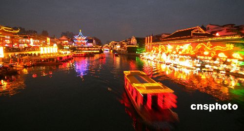 2009年1月28日晚,南京夫子廟景區(qū)燈火璀璨、景色迷人,吸引了四面八方的游人。人們看燈展、逛燈市、品小吃,領(lǐng)略新春佳節(jié)期間獨特的秦淮風(fēng)韻。