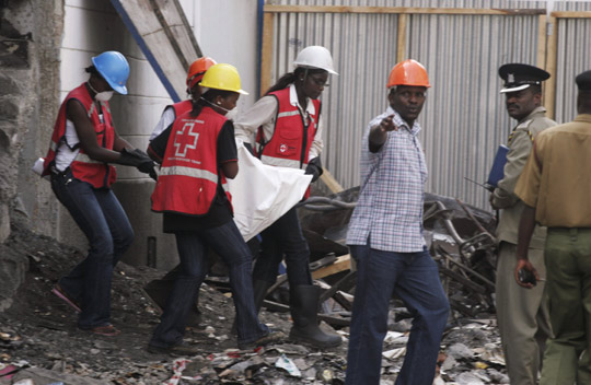 1月30日,救援人員在肯尼亞首都內(nèi)羅畢市中心一家被焚毀超市搬運死難者遺體。28日發(fā)生的這場大火已造成至少19人死亡,另外還有數(shù)十人失蹤。