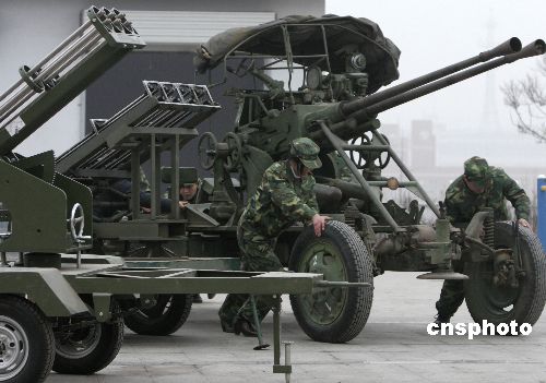 2月1日傍晚,河南洛陽孟津縣人工影響天氣作業(yè)基地的工作人員移動高炮和火箭發(fā)射架進入作業(yè)狀態(tài)。當晚11:50及2日凌晨5:00,除偃師市和汝陽縣因天氣條件不具備而沒有實施作業(yè)外,其他7縣均實施了多批次人工增雨雪作業(yè),共發(fā)射火箭彈120枚,炮彈200發(fā),作業(yè)區(qū)內(nèi)普降小雨,有效緩解了當?shù)厣只痣U等級,也使旱情得到了些許緩解。中新社發(fā) 張曉理 攝
