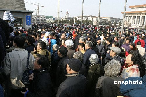 正陽門原計(jì)劃三日十二時(shí)至十六時(shí)免費(fèi)開放,但早九點(diǎn)已有兩、三千市民在門口繞圈排起了長龍。人群中,有年過八旬的老太太,有從京郊乘車近兩小時(shí)趕來的市民。據(jù)一位市民透露,還有人凌晨三點(diǎn)即來排隊(duì),不但可拿到中國人民解放軍入城式六十周年紀(jì)念券、捷足先登城樓看展覽,更能穩(wěn)得當(dāng)日僅發(fā)放一百份的珍貴紀(jì)念品。