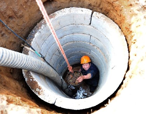 汝陽縣柏樹鄉(xiāng)群眾正在打井,準備抽水抗旱。中新社發(fā) 高山岳 攝