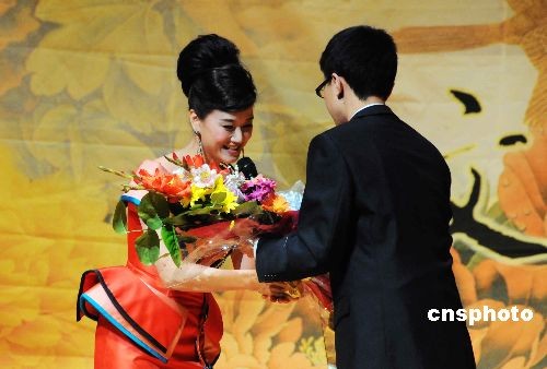 圖為熱情的華盛頓“英迷”走上舞臺向宋祖英獻花。中新社發(fā) 邱江波 攝
