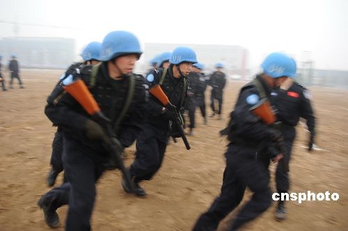 圖:中國赴海地維和警察防暴隊冒雨訓練(3)