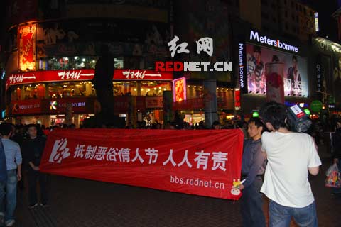 在長沙黃興南路步行街,記者還隨機找了家門口掛有情人節(jié)促銷活動招牌的店鋪,在獲悉記者來意后,一位李姓店長談了自己的看法。他表示:“網(wǎng)友組織這樣的活動,可能只是顯示下自己的個性吧。不過,我們可沒有在情人節(jié)那天有調(diào)高價格的計劃,相反還有一些降價促銷的活動,談不上靠節(jié)日撮錢的問題。這和其他節(jié)日一樣,我們只會在節(jié)日的時候讓消費者得到實惠,抵制真是吃飽了撐的。”( 耿紅仁 周亦男)